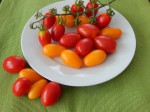 Toni und Carmella werden laufend geerntet und eigenen sich am besten als Snack für Zwischendurch oder für Salate. Im Spätherbst vor dem ersten Frost grün geerntete Paradeiser reifen nach. Am